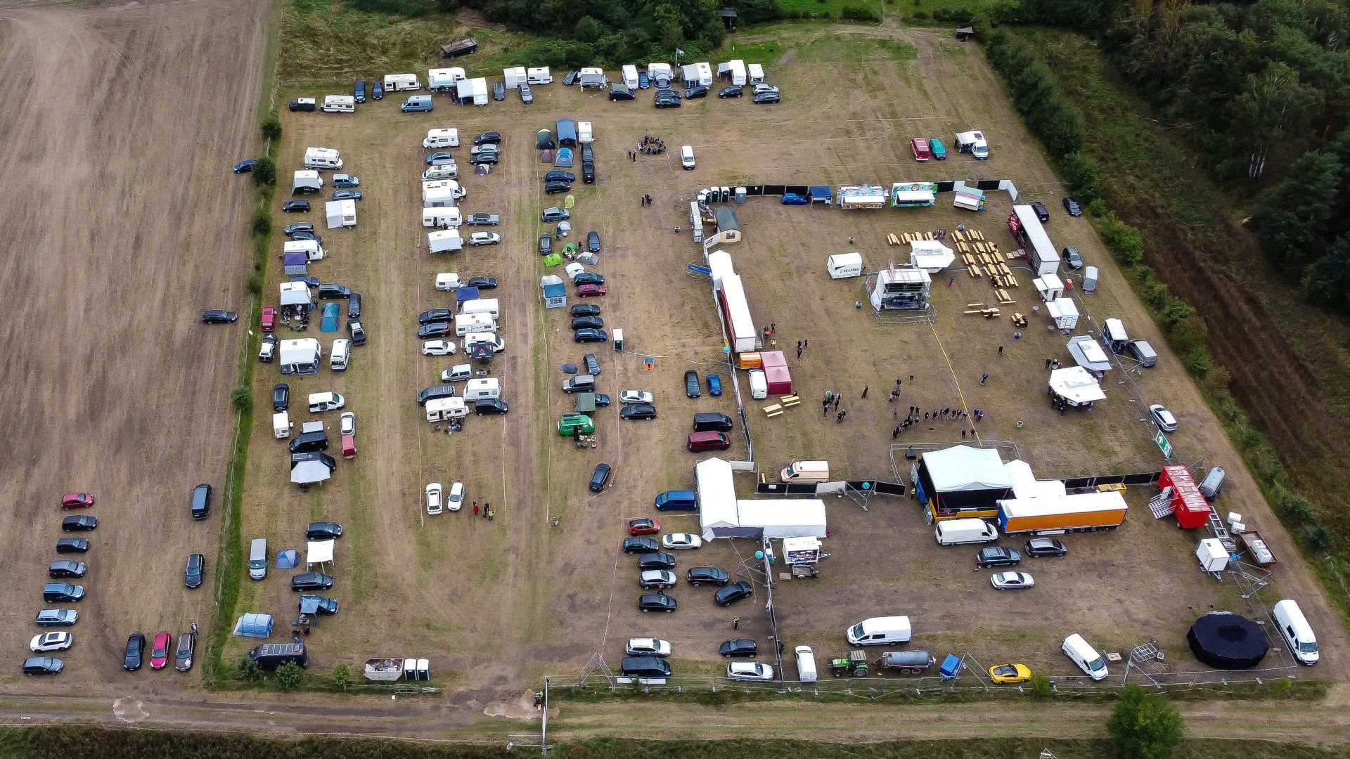 Het evenemententerrein dat zich vult.